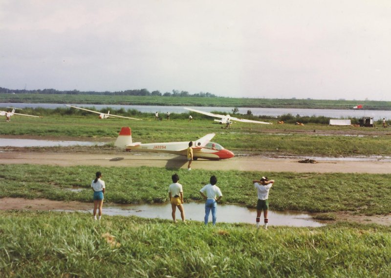 1982年夏合宿、土手側の川上から南風発航の1コマです。