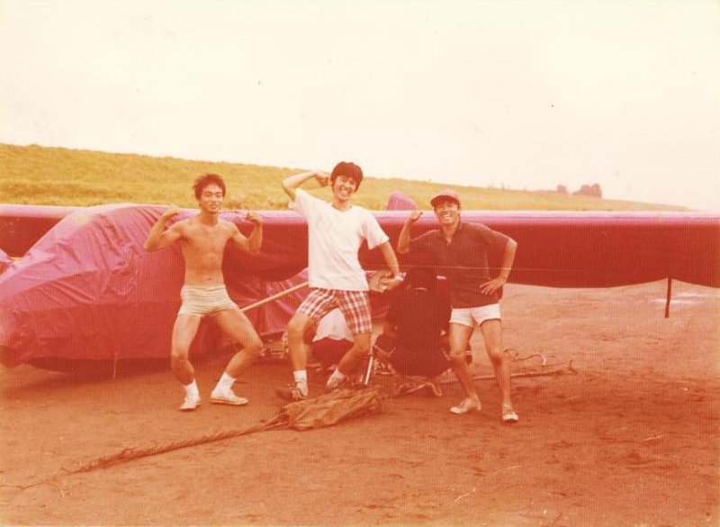 1974年 パンク修理中にポーズする1期の3バカトリオ (失礼!)