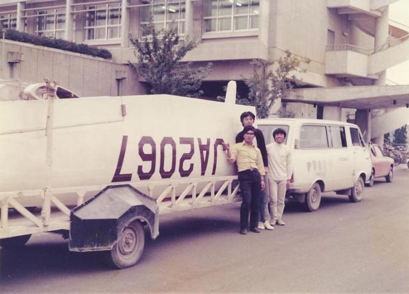1974年 合宿へ出発する前に校舎の前で記念写真